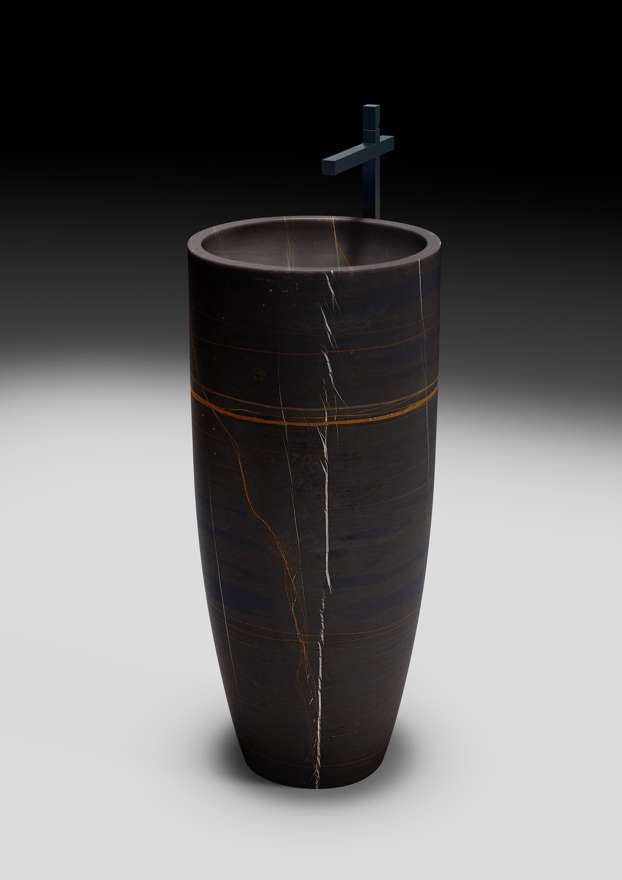 With its austere and commanding presence, it stands not just as an object, but as a true architectural presence. Also offered in a version with wall-mounted drainage, it embodies the quiet power of stone, distilled in its purest, most evocative form. Inspired by the natural world, Baobab rises like a trunk from the earth — its silhouette expanding as it ascends, evolving into a wide, conical basin.