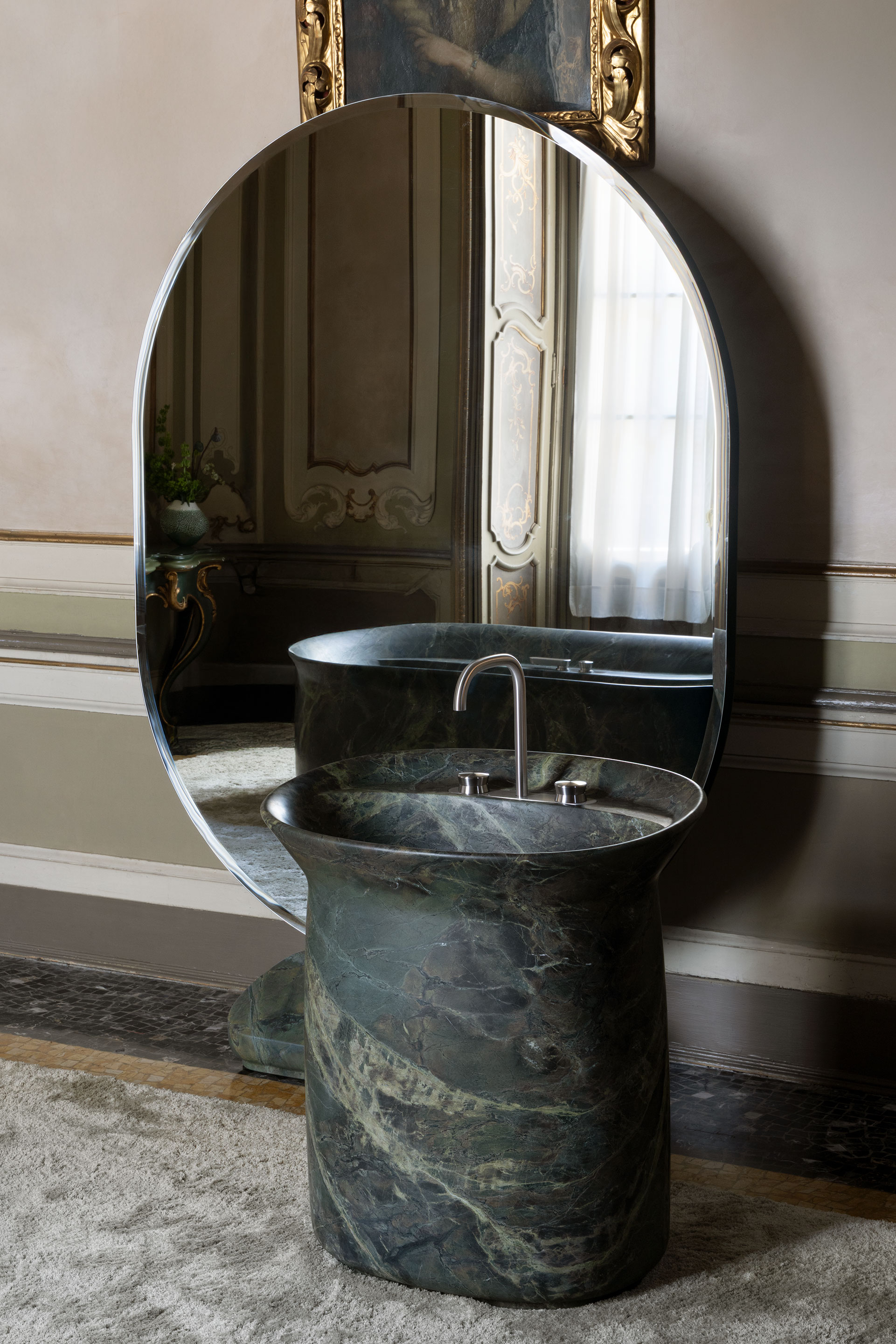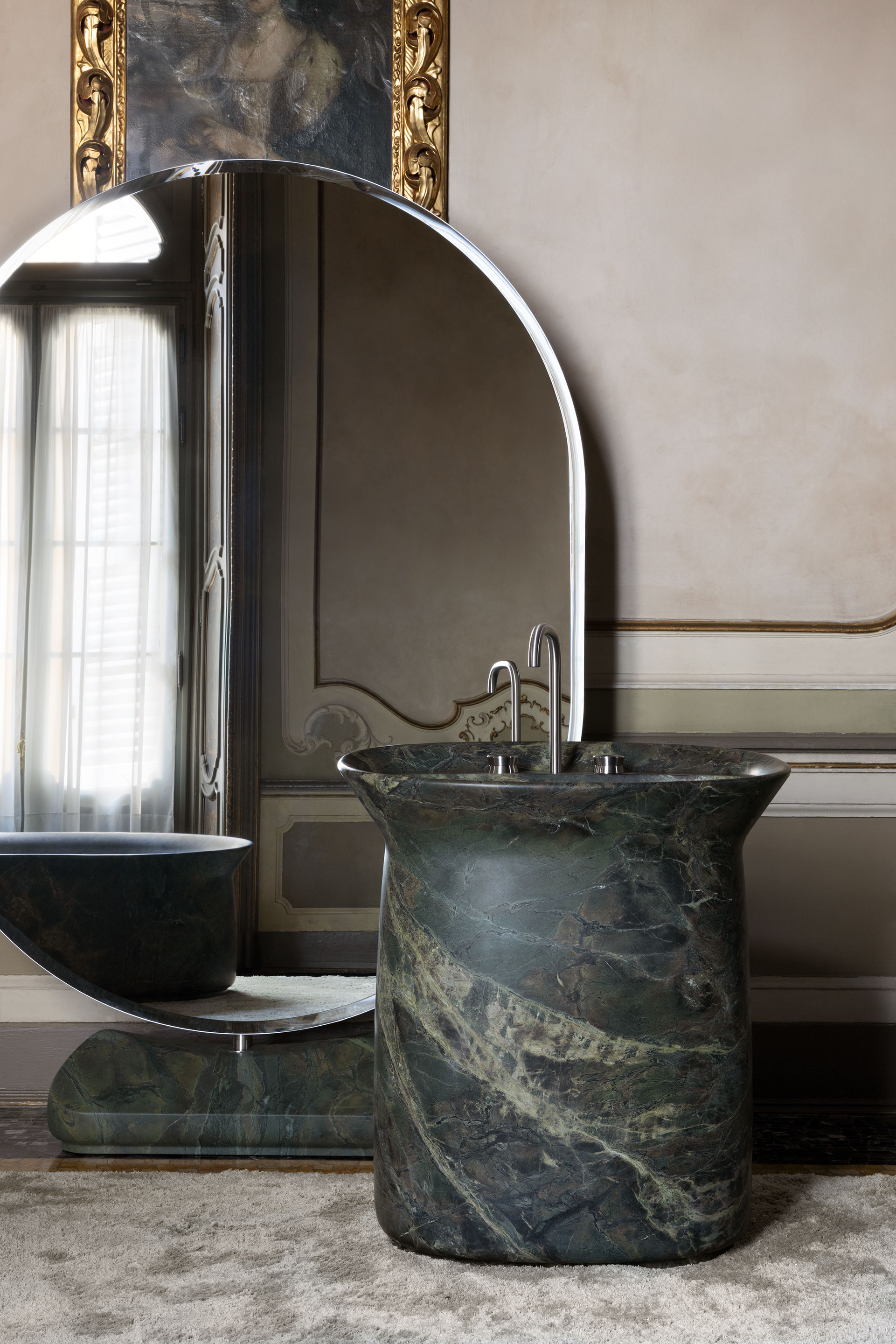 With the Majesté collection, the bathroom environment is given a new lease of life in Monica Armani's vision that infuses this space with a renewed sense of harmony and well-being. Molded in marble, the washbasin, bathtub and floor mirror become connecting elements with a pervasive naturalness that stimulates the senses and inspires an innate vitality.