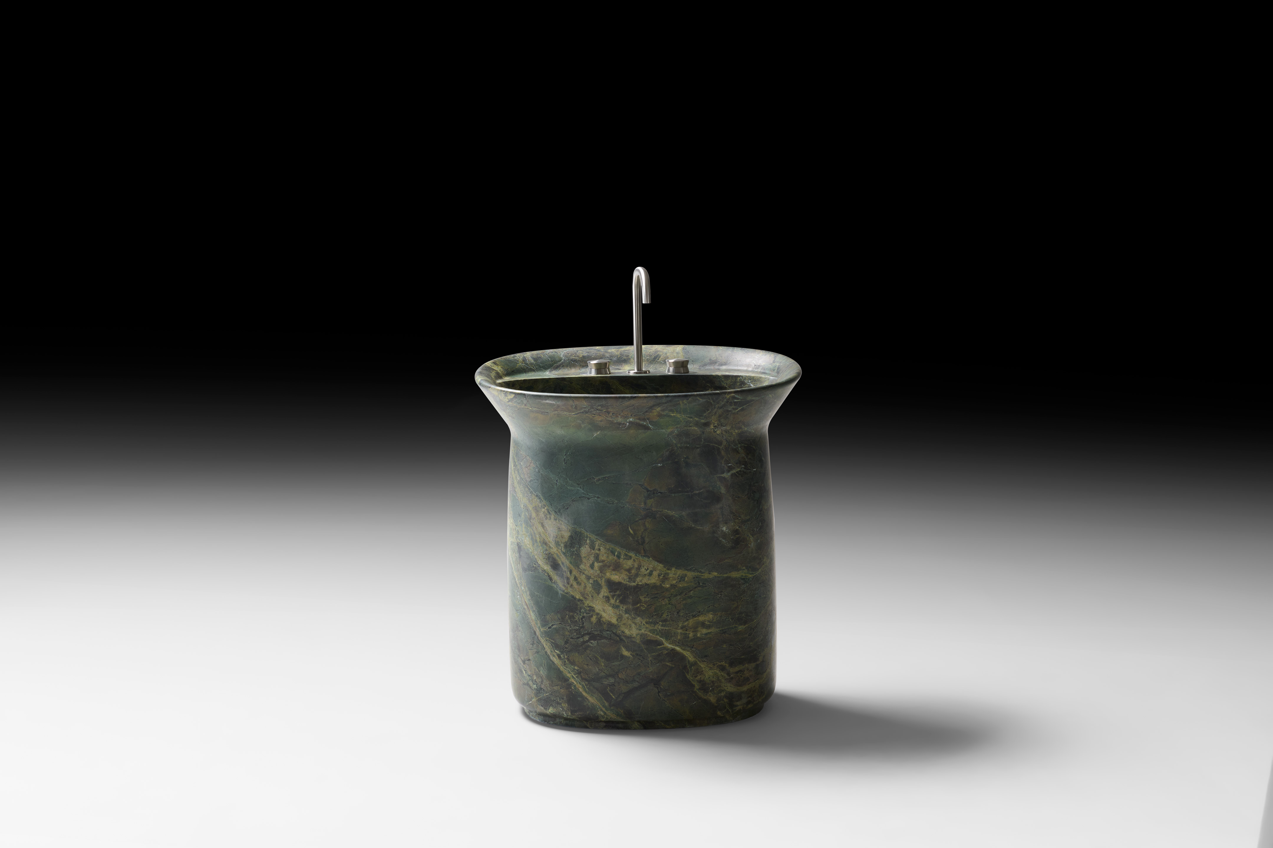 The Majesté washbasin is a tribute to natural stone and its noble soul. Elegant and monumental, it transforms a functional element into a picturesque protagonist, a work of art that dominates the space with grace.