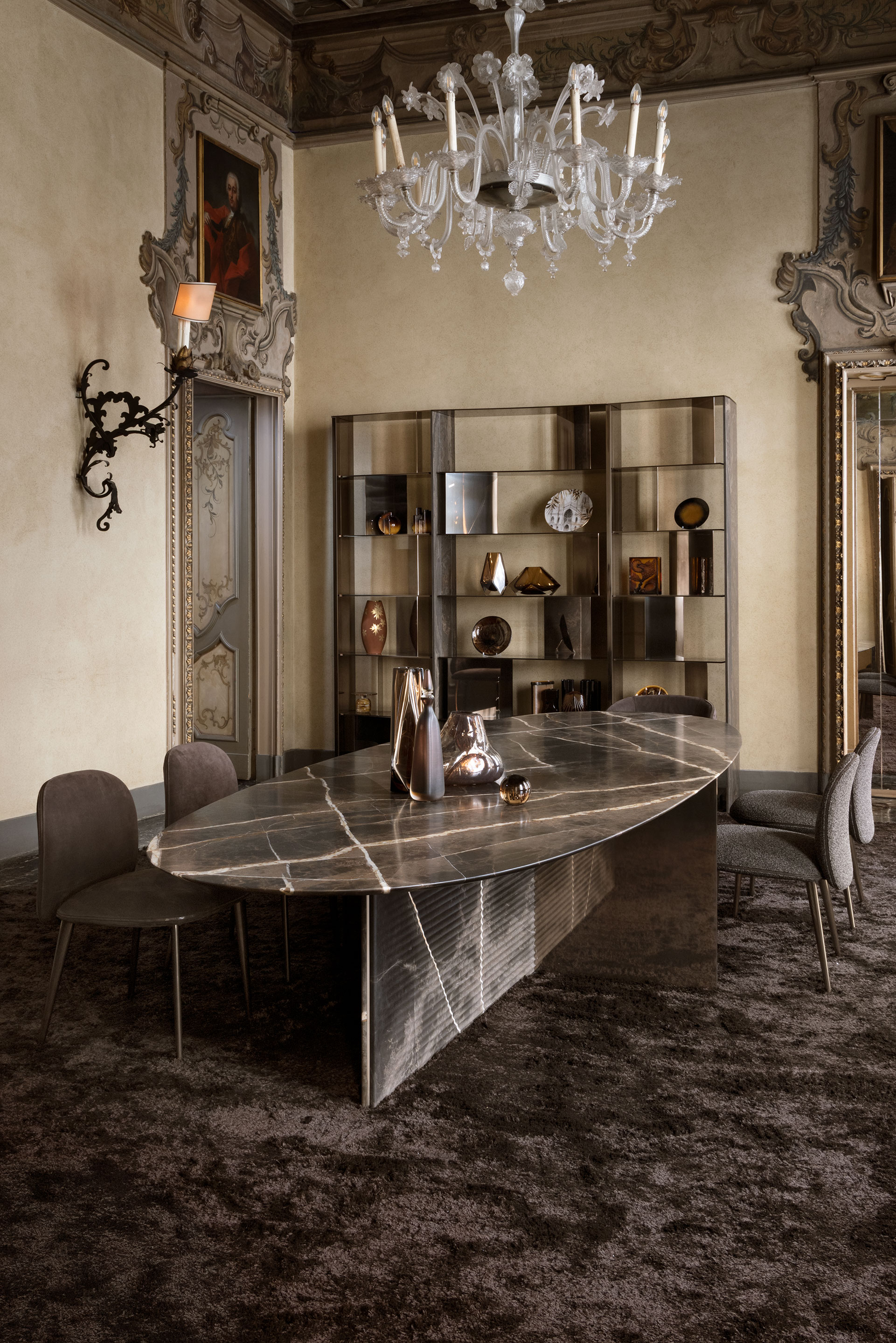 With Aves, Draw Studio has captured the solemnity of marble in a form of surprising lightness, transforming the dining table into a gesture suspended between strength and delicacy. Its subtle, almost ethereal-like surfaces intertwine in a poetic dialogue of interlocking elements, reflections, and subtle tensions — almost like an origami sculpted into the matter.