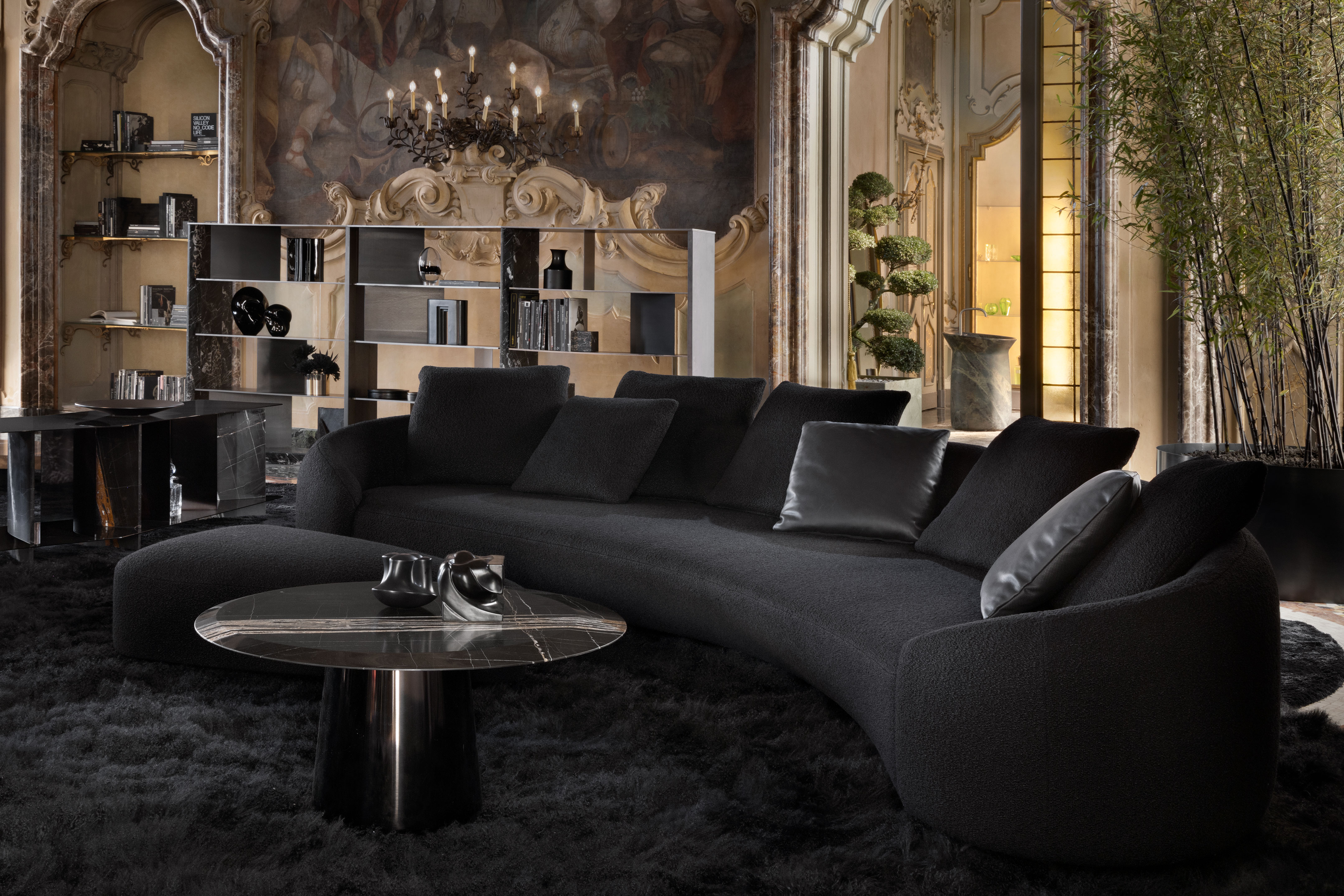 Presented at Milan Design Week in Portoro Nero and Sahara Noir marble.
