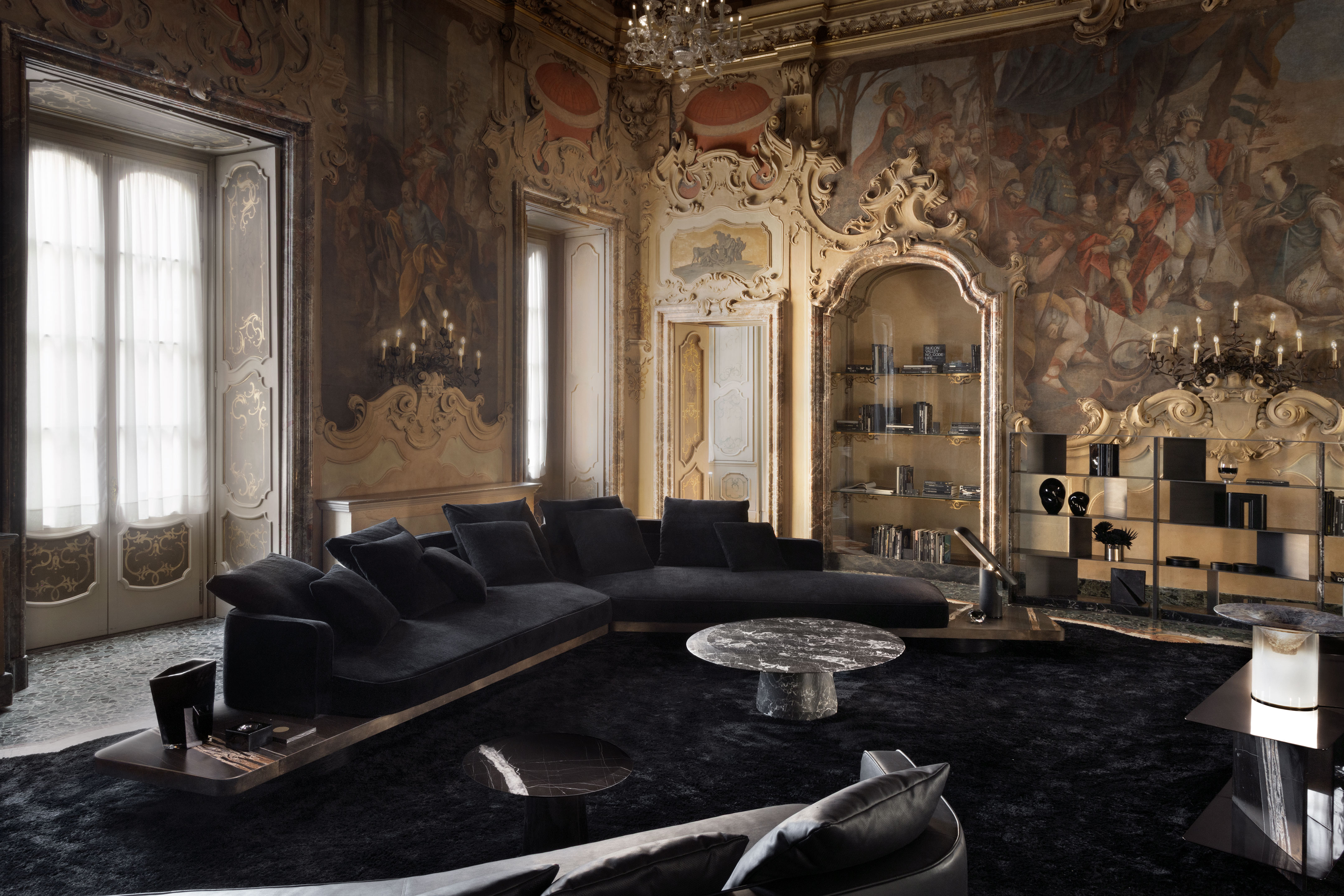 Vast sand plains, where the earth blends with the sky. Ordos is the translation of this vision: a platform that seems to float, suspended between the softness of cushions and the solidity of marble.