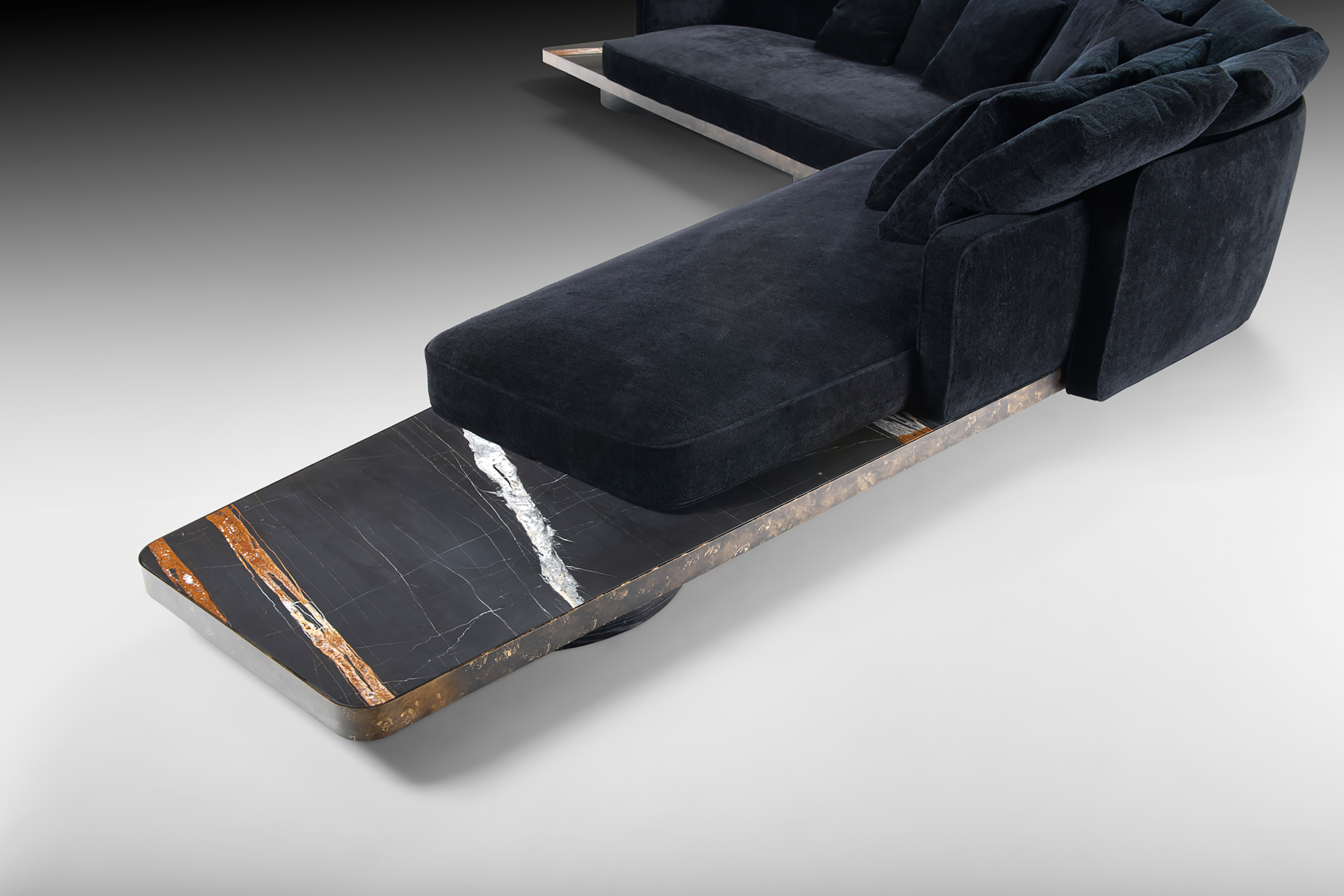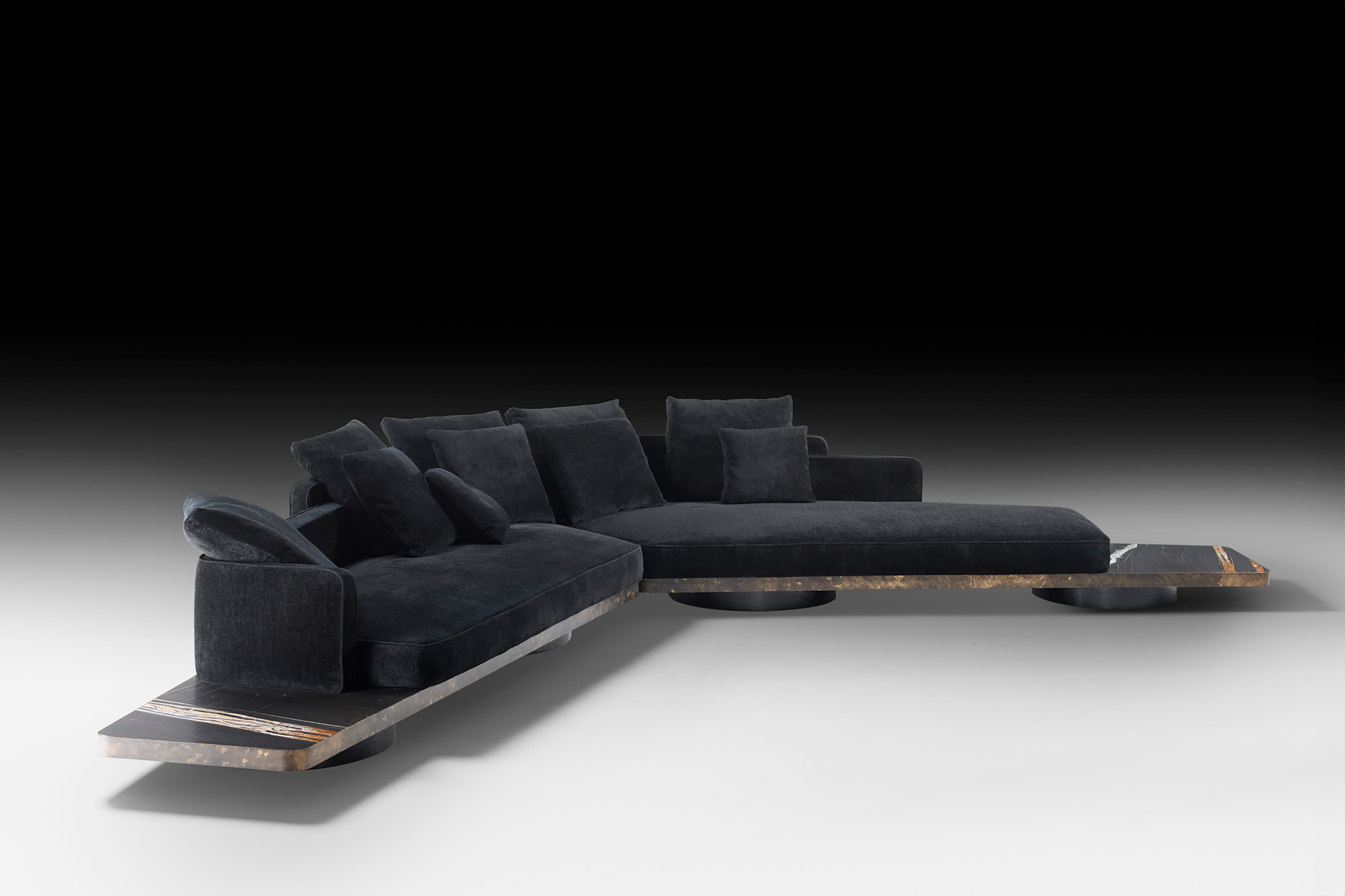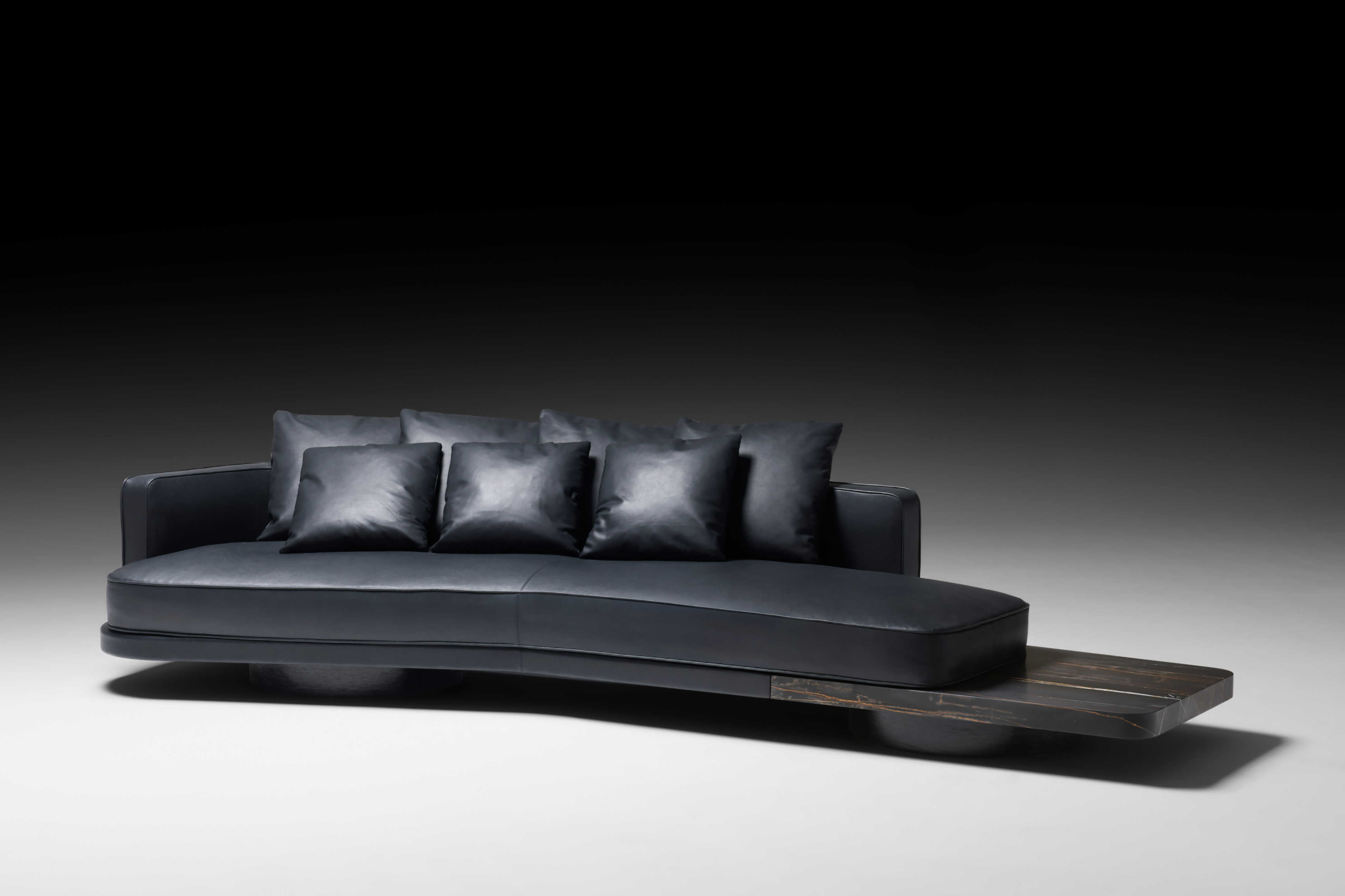 Ordos’s naturalness reveals itself in a measured, almost instinctive balance between soft volumes and precious materials. The enveloping padding blends with the wide cushioning and elegant marble base, creating a composition that evokes calm, elegance, and proportion.